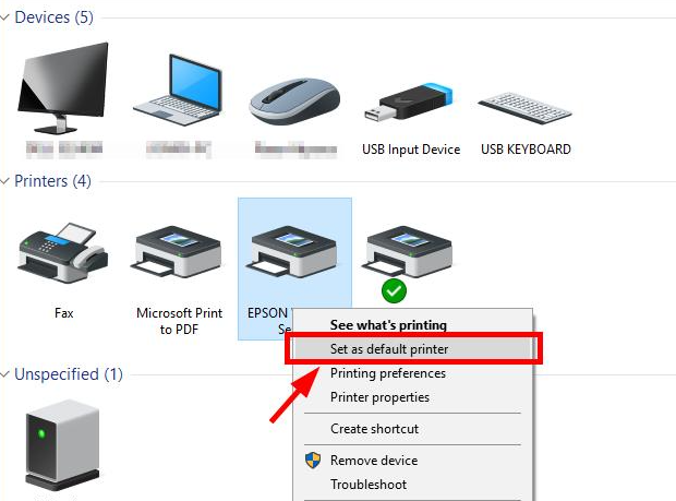 • Then, right click on your desired printer and select ‘Set as default printer’ option.