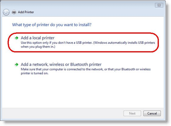- Go to device and printer option from control panel and click on ‘add a local printer’ option and click on next and follow the process . This will search and install your printers driver.