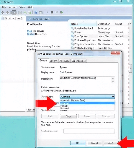 Make sure that your printer’s spooler services is running and is in automatic mode. You can do this by following the below steps-