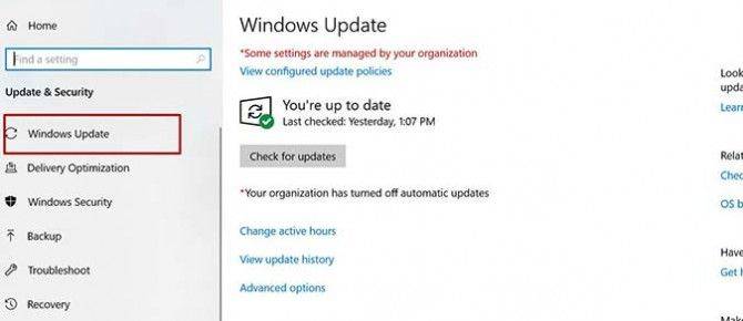 - Choose the Windows Update tab (shown by circular arrows) from the sidebar on the left.