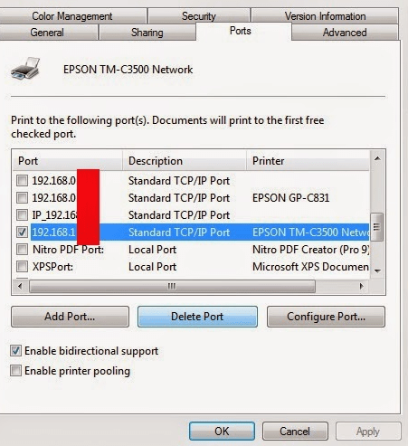 - Next, choose the TCP/IP port that is assigned by default, and then click on “Epson Printer Properties” on the newly created port.