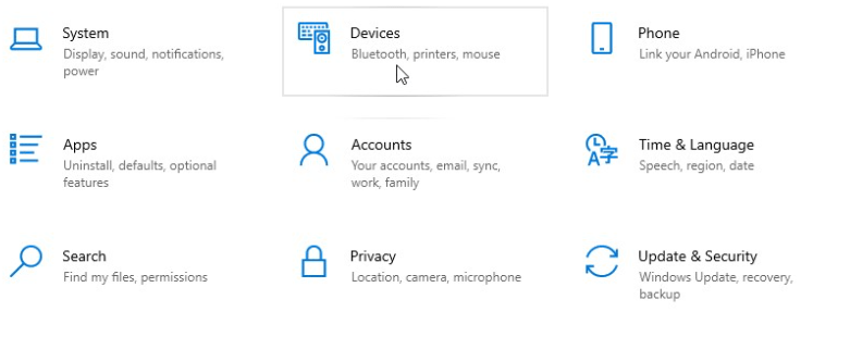 - Proceed by clicking on ‘Devices’ within the settings menu.