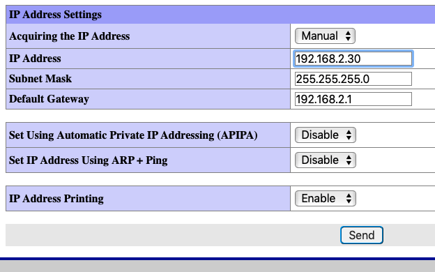 - Enter the printer’s IP address into the designated field labeled ‘IP Address’, then click ‘Submit’ located at the bottom of the page.