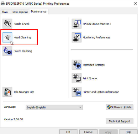 - Thereafter, click on “Head Cleaning” option from the next appearing window.