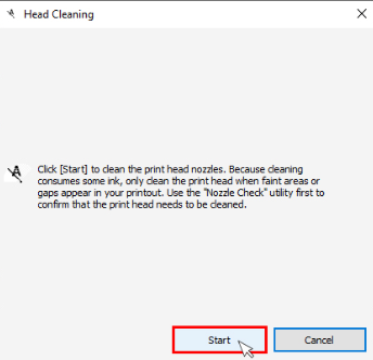 - Click the “Start” button to begin cleaning your head, then continue to follow the on-screen directions.