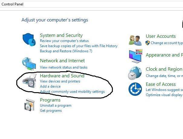 - Next, locate and select the option labelled “Hardware and Sound” or “Printers and Other Hardware.” The specific wording of this option may vary depending on your Windows version.