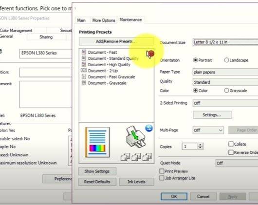 - Inside the printer properties, navigate to the “Maintenance” or “Hardware” tab.