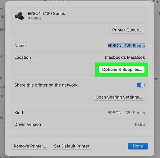 - Proceed by clicking on “Options & Supplies.” You can find this option in the middle of the window.
