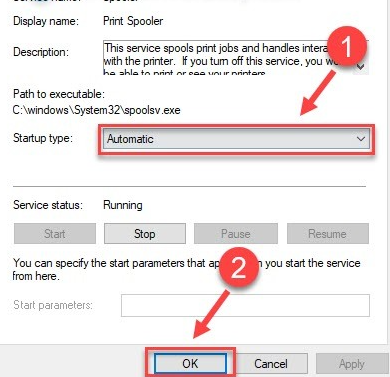 - And Set the Startup type > Automatic and hit ‘OK’ and click on ‘Apply’.