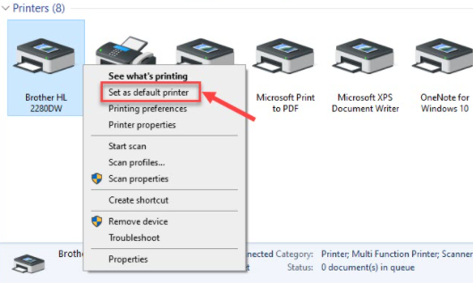 - Next, select your Brother printer from the list of available printers and right click on it.
