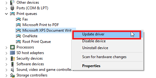 - Next, click on the “Print Queue” to enlarge the list and do the right click on the Brother printer and select ‘Update Driver’ option and select ‘search automatically’ for updating driver software.