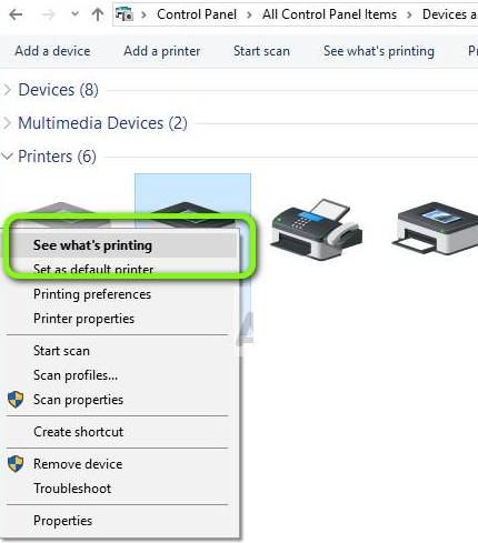 • Now, next step is to right-click on the printer and select the “View what’s printing” option.