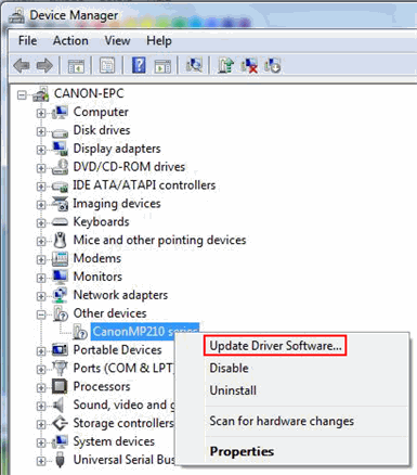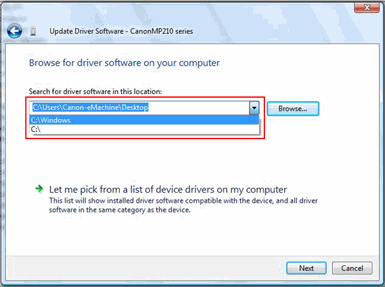 Click on “Let me pick from the Canon drivers on my computer”.Thereafter click “Next” after selecting the “Printer” option.
