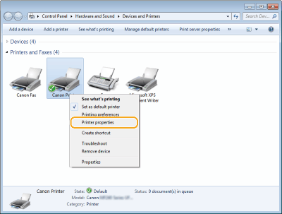 Click on the “Devices and Printers” option from the Start button. Thereafter from a fresh screen that appears right-click on the printer icon and select” Properties”.