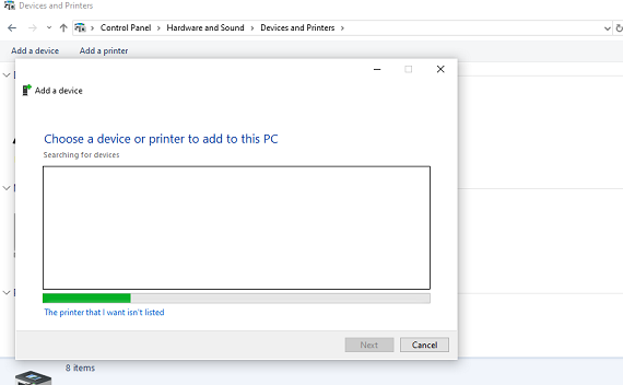 - Thereafter, hit the start button. Open “Devices and Printers” from the Control Panel. Select the local printer option after clicking on the “Add a printer” option.